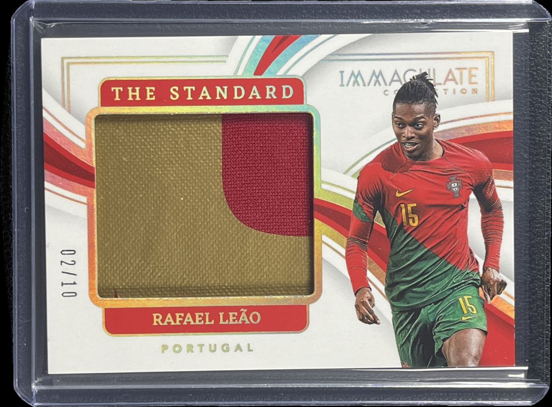 The Rafael Leao 2023 Immaculate #TS-RLO The Standard - Gold card is 1 of 30 Rafael Leao's card variations in the 2023 Immaculate set being tracked by Sports Card Investor, including Base /60, Silver /40, Sapphire /25, Ruby /19, and Gold /10.