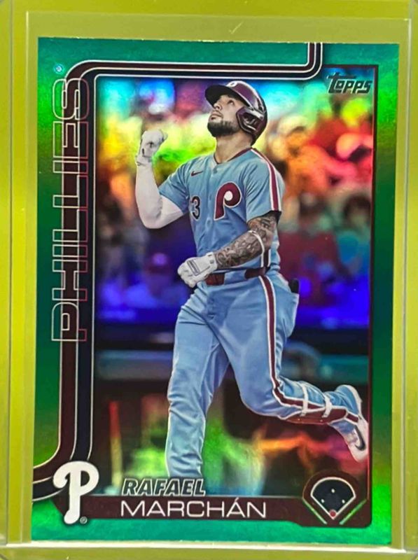 The Rafael Marchan 2025 Topps Update #US289 Green Rainbow Foil /99 card is 1 of 52 Rafael Marchan's card variations in the 2025 Topps Update set being tracked by Sports Card Investor, including Base, Aqua Holo Foil, Aqua Rainbow Foil, Diamante Foil, and Holiday.