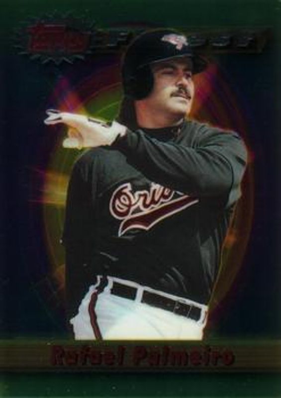 The Rafael Palmeiro 1994 Topps Finest #227 Base card is 1 of 2 Rafael Palmeiro's card variations in the 1994 Topps Finest set being tracked by Sports Card Investor, including Refractor.