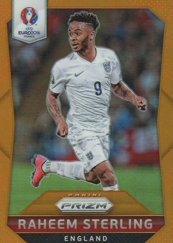 The Raheem Sterling 2016 Prizm Euro #64 Orange /20 card in Raw condition has not changed in price in the last 30 days and was last sold for $16.50 .