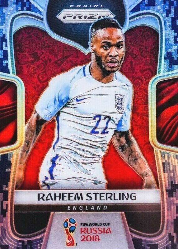 This card is 1 of 21 Raheem Sterling's card variations in the 2018 Prizm World Cup set being tracked by Sports Card Investor, including Base, Black & Gold Wave, Green & Orange Wave, Hyper, and Lazer.