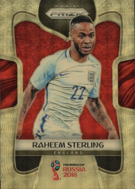 This card is 1 of 21 Raheem Sterling's card variations in the 2018 Prizm World Cup set being tracked by Sports Card Investor, including Base, Black & Gold Wave, Green & Orange Wave, Hyper, and Lazer.