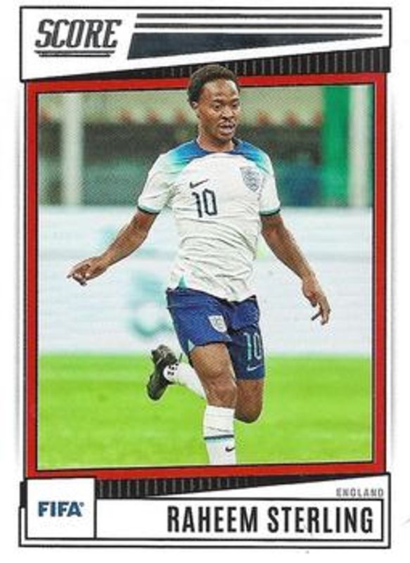 The Raheem Sterling 2022 Score FIFA #51 Base card is 1 of 34 Raheem Sterling's card variations in the 2022 Score FIFA set being tracked by Sports Card Investor, including #35 Base, #35 Laser, #51 Laser, #51 Swirl, and #35 Swirl.