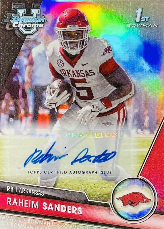 2023 Bowman Chrome University Raheim Sanders 1st Bowman Auto Refractor #/499