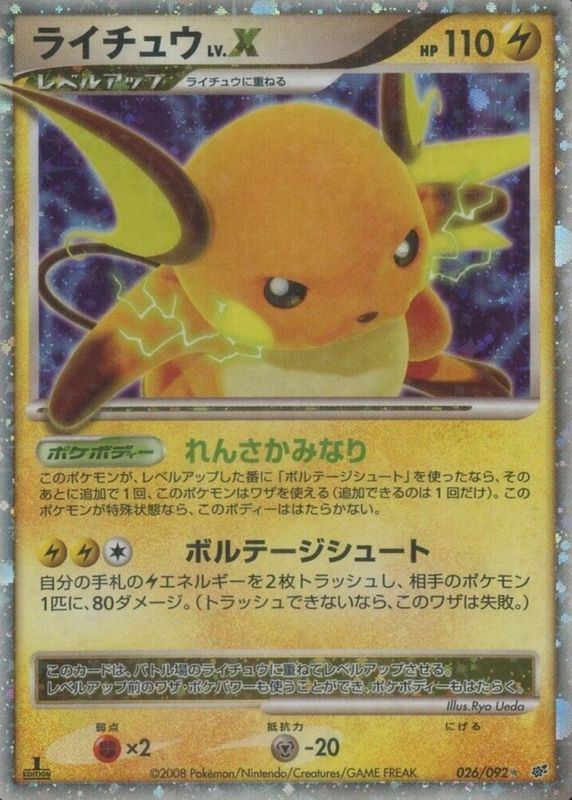 Raichu LV.X 2008 Japanese Diamond & Pearl: Intense Fight in the Destroyed Sky #026/092 1st Edition Holo RAW TCG (NEAR MINT) Price Guide