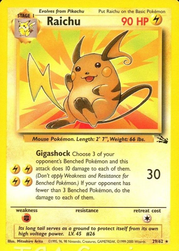 Raichu 1999 Fossil #29/62 Promo (Thunderstorm Gift Box) RAW TCG (NEAR MINT) Price Guide