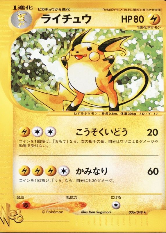 Raichu 2001 Japanese Web #36/48 Unlimited RAW TCG (NEAR MINT) Price Guide