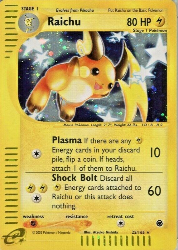Raichu 2002 Expedition #025/165 Holo RAW TCG (NEAR MINT) Price Guide