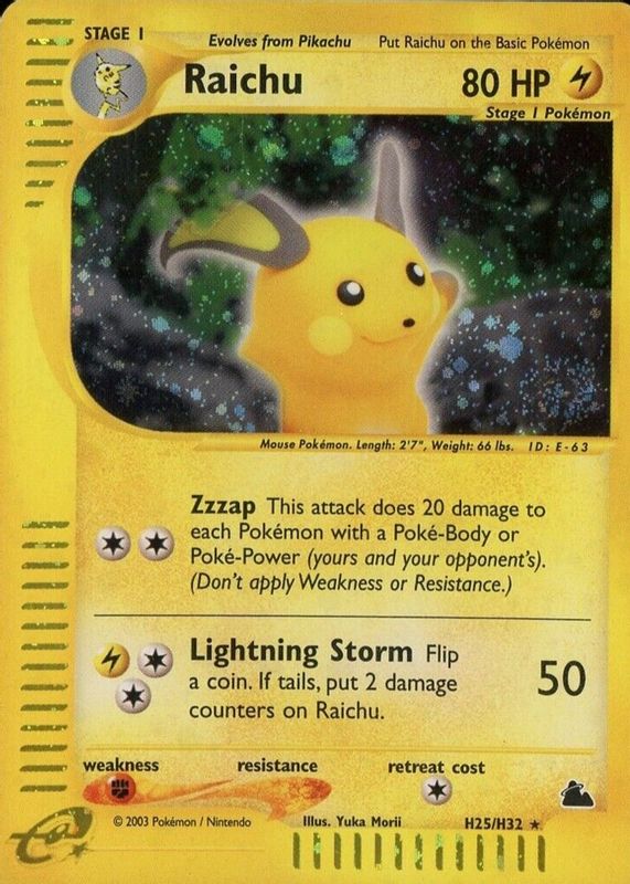 Raichu 2003 Skyridge #H25 Holo RAW TCG (NEAR MINT) Price Guide