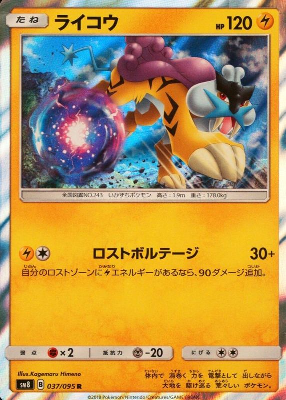 Raikou 037/095 R POKEMON CARD JAPANESE SM8 SUPER BURST IMPACT HOLO RARE - NM