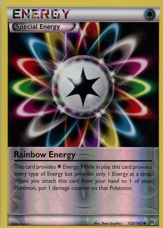 The Rainbow Energy 2015 XY: BREAKthrough #152/162 Reverse Holo card in Raw TCG (Near Mint) condition has moved up $1.01 (+102%) in the last 30 days and was last sold for $2.00 .