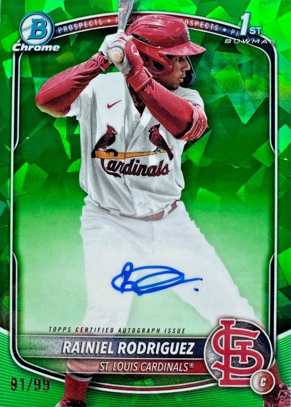 RAINIEL RODRIGUEZ 2025 BOWMAN CHROME SAPPHIRE 1ST GREEN AUTO /99 CARDINALS 📈