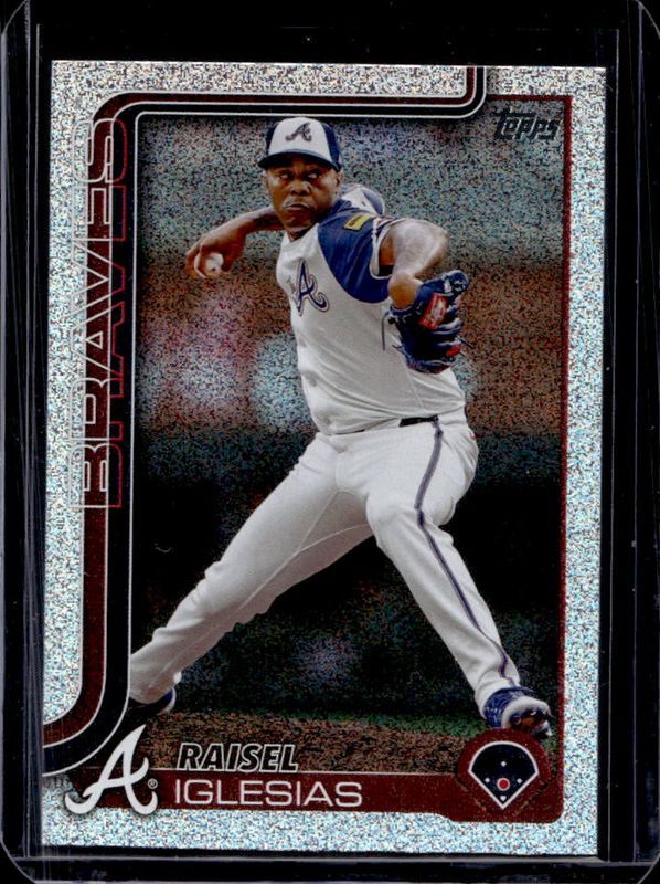 The Raisel Iglesias 2025 Topps #304 Sandglitter card is 1 of 62 Raisel Iglesias' card variations in the 2025 Topps set being tracked by Sports Card Investor, including Base, Aqua Holo Foil, Diamante Foil, Holo Foil, and Pink Diamante Foil.