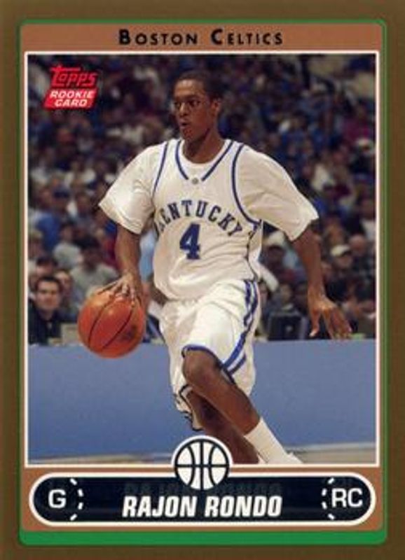 The Rajon Rondo 2006 Topps #251 Gold /500 Rookie card is 1 of 5 Rajon Rondo's card variations in the 2006 Topps set being tracked by Sports Card Investor, including Base, Black /99, Platinum /1, and Rookie Photo Shoot Autographs.