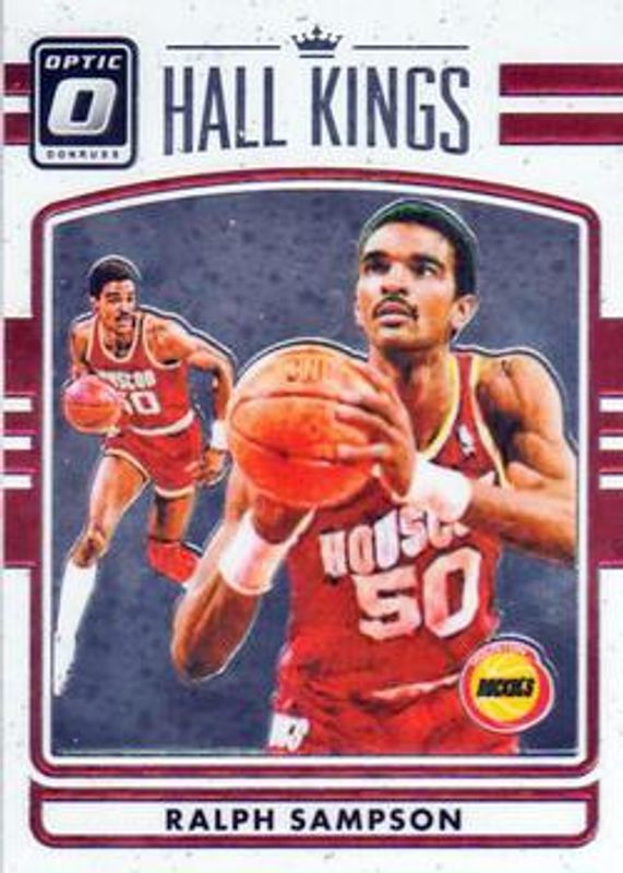 The Ralph Sampson 2016 Optic #7 Hall Kings card is 1 of 11 Ralph Sampson's card variations in the 2016 Optic set being tracked by Sports Card Investor, including Hall Kings - Holo, Hall Kings - Purple, Hall Kings - Orange /199, Hall Kings - Red /99, and Hall Kings - Blue /49.