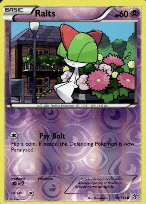The Ralts 2013 Black & White: Plasma Storm #059/135 Base card in Raw TCG (Lightly Played) condition has not changed in price in the last 30 days and was last sold for $3.61 .