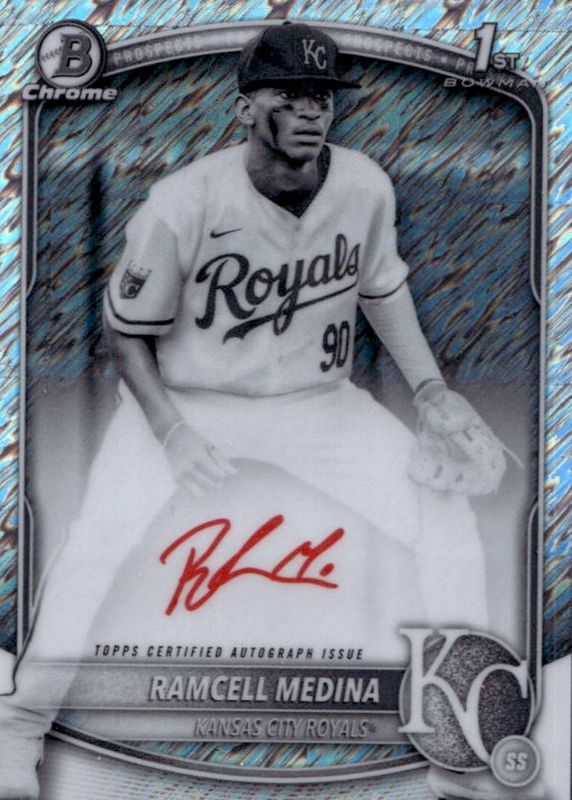 The Ramcell Medina 2025 Bowman Chrome #CPA-RA Prospect Auto - Black & White Shimmer Refractor (1st) card in Raw condition has not changed in price in the last 30 days and was last sold for $227.50 .