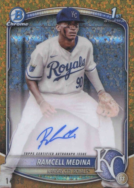 Ramcell Medina 2025 Bowman Chrome 1st - Prospect Auto Gold Mini Diamond #'d/50