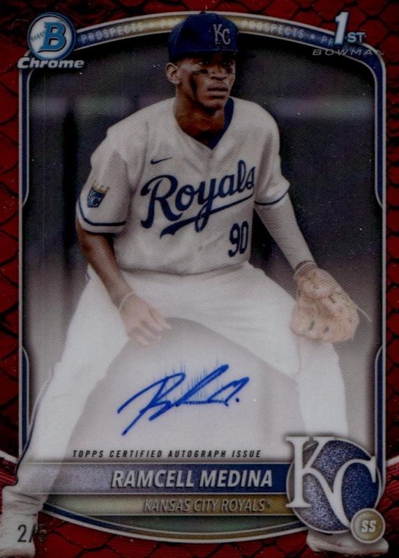 Ramcell Medina 2025 Bowman Chrome #CPA-RA Prospect Auto - Reptilian Red Refractor /5 (1st) RAW Price Guide