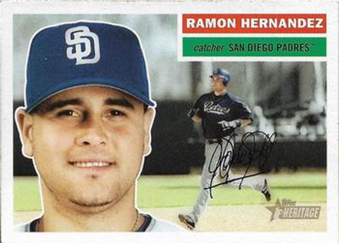 The Ramon Hernandez 2005 Topps Heritage #290b Base card is 1 of 2 Ramon Hernandez's card variations in the 2005 Topps Heritage set being tracked by Sports Card Investor, including Base.
