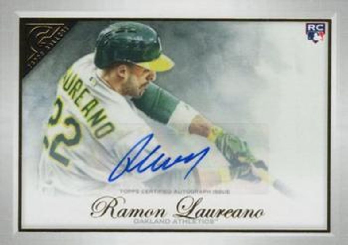 The Ramon Laureano 2019 Topps Gallery #11 Autographs Rookie card is 1 of 18 Ramon Laureano's card variations in the 2019 Topps Gallery set being tracked by Sports Card Investor, including Base, Artist Proof, Wood, Private Issue /250, and Green /99.