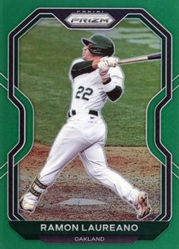 The Ramon Laureano 2021 Prizm #88 Green card is 1 of 85 Ramon Laureano's card variations in the 2021 Prizm set being tracked by Sports Card Investor, including Base, Blue, Blue Velocity, Carolina Blue, and Cosmic Haze.