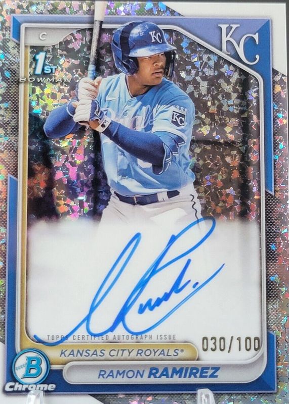 2024 Bowman Chrome Ramon Ramirez Mini-Diamond Refractor 1st Auto #77/100 Royals