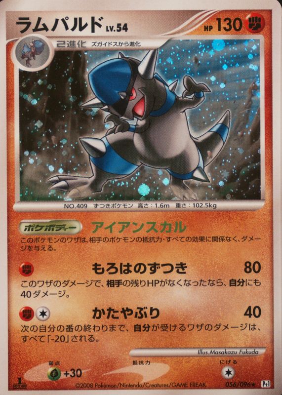 Pokemon Japanese Rampardos Platinum Pt1 056/096 Holo Rare 1st Edition NM