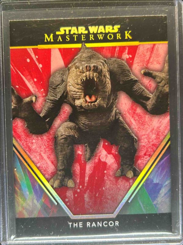 The Rancor 2024 Topps Star Wars Masterwork #85 Red /25 card is 1 of 12 Rancor's card variations in the 2024 Topps Star Wars Masterwork set being tracked by Sports Card Investor, including Base, Blue, Green /99, Purple /50, and Orange /10.