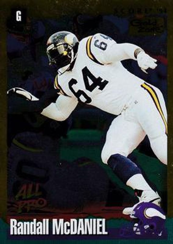 The Randall McDaniel 1994 Score #77 Gold Zone card is 1 of 2 Randall McDaniel's card variations in the 1994 Score set being tracked by Sports Card Investor, including Base.