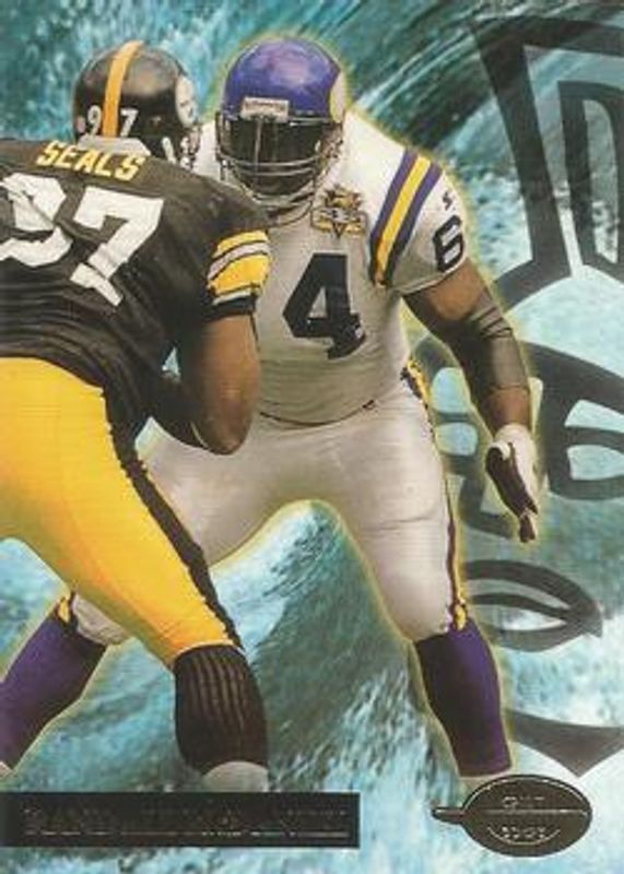 The Randall McDaniel 1996 Topps Gilt Edge #4 Base card is 1 of 2 Randall McDaniel's card variations in the 1996 Topps Gilt Edge set being tracked by Sports Card Investor, including Platinum.