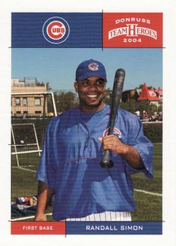 The Randall Simon 2004 Donruss Team Heroes #70 Base card is 1 of 4 Randall Simon's card variations in the 2004 Donruss Team Heroes set being tracked by Sports Card Investor, including Showdown - Bronze /150, Showdown - Silver /50, and Showdown - Gold /10.