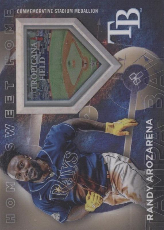 The Randy Arozarena 2024 Topps #HSH-RA Home Sweet Home Stadium Medallion - Gold /75 card in Raw condition has not changed in price in the last 30 days and was last sold for $2.25 .