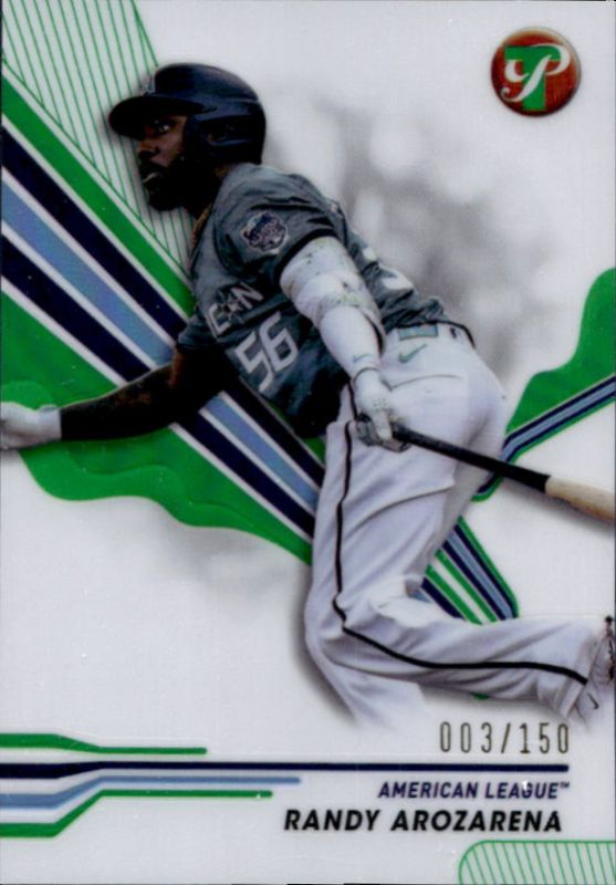 The Randy Arozarena 2024 Topps Pristine #269 Green Refractor /150 card is 1 of 54 Randy Arozarena's card variations in the 2024 Topps Pristine set being tracked by Sports Card Investor, including #269 Base, #209 Base, #269 Pristine Refractor, #209 Pristine Refractor, and #209 Refractor.