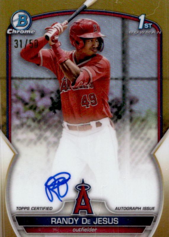 2023 Bowman Chrome Prospects RANDY DE JESUS GOLD AUTO 1ST ROOKIE RC /50 Angels