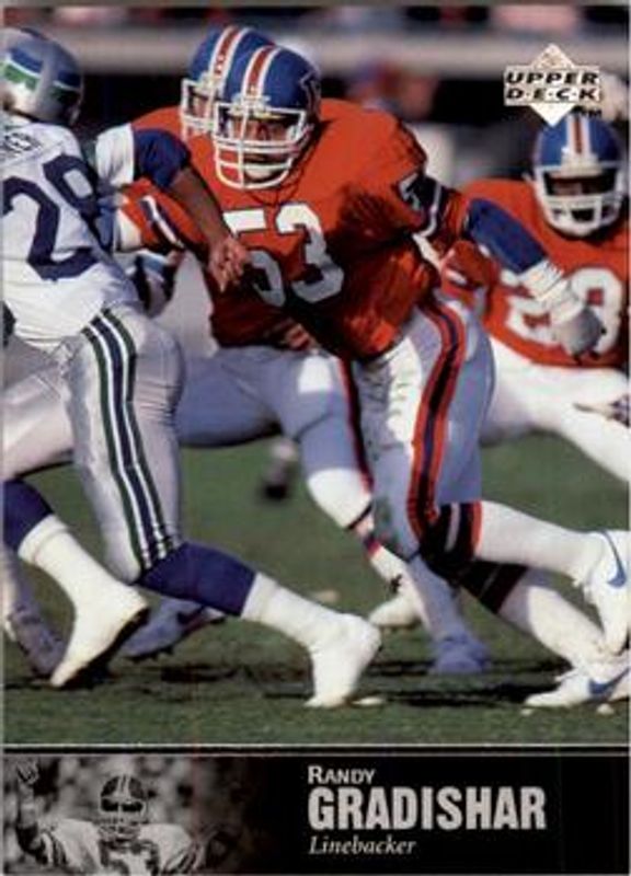 The Randy Gradishar 1997 Upper Deck Legends #107 Base card is 1 of 2 Randy Gradishar's card variations in the 1997 Upper Deck Legends set being tracked by Sports Card Investor, including Autographs.