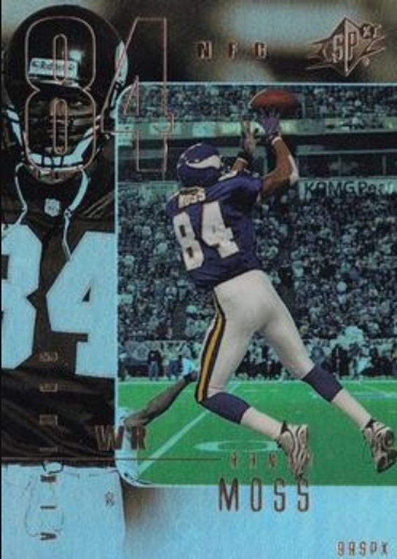 The Randy Moss 1999 SPx #51 Base /1999 card is 1 of 5 Randy Moss' card variations in the 1999 SPx set being tracked by Sports Card Investor, including Radiance /100, Spectrum /1, Masters, and Starscape.