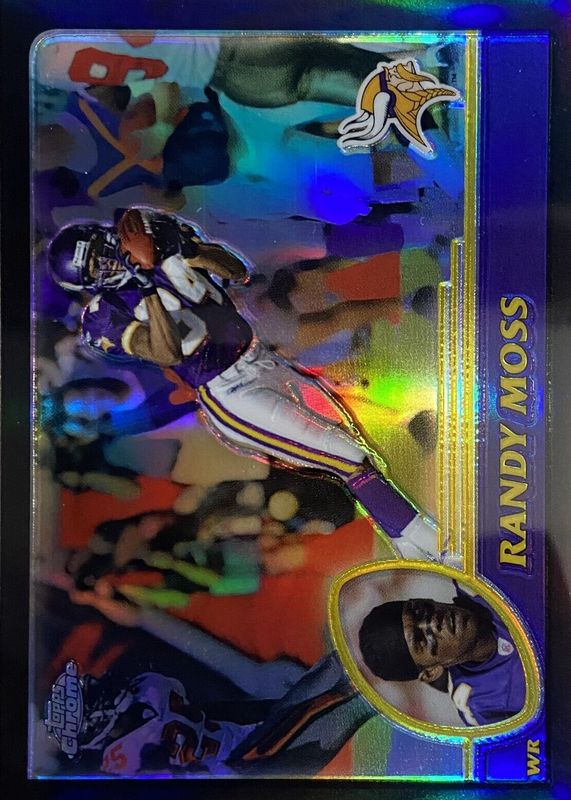 This card is 1 of 3 Randy Moss' card variations in the 2003 Topps Chrome set being tracked by Sports Card Investor, including Gold X-Fractor /101, and Record Breakers - Refractor /100.