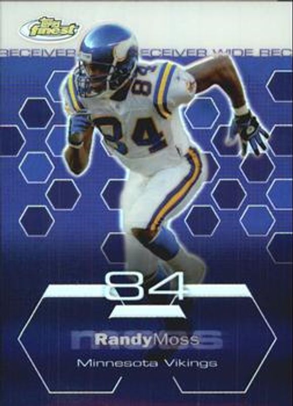 The Randy Moss 2003 Topps Finest #5 Refractors /199 card is 1 of 4 Randy Moss' card variations in the 2003 Topps Finest set being tracked by Sports Card Investor, including Base, Gold Refractor /50, and Gold Xfractor /50.