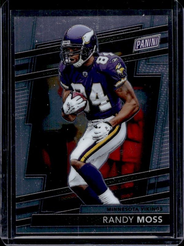 The Randy Moss 2024 Panini NSCC VIP Party #9 Base card is 1 of 25 Randy Moss' card variations in the 2024 Panini NSCC VIP Party set being tracked by Sports Card Investor, including Autographs, Black Gold Autographs, Giraffe, Gold Autographs, and Gold Memorabilia.
