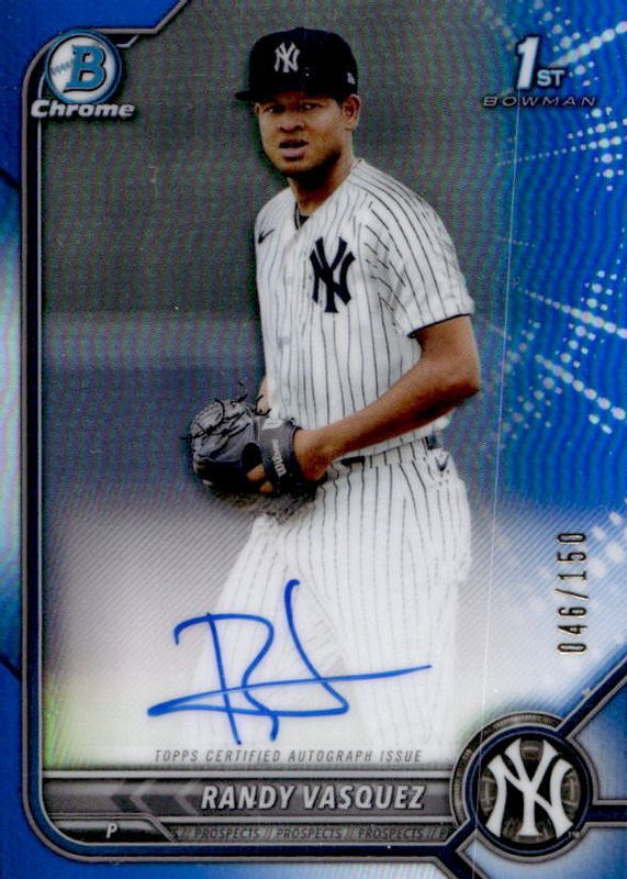 2022 BOWMAN CHROME BLUE /150 1ST AUTO RANDY VASQUEZ YANKEES
