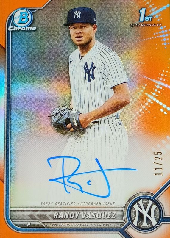2022 Bowman Chrome Randy Vasquez 1st Orange Refractor Auto /25 Yankees