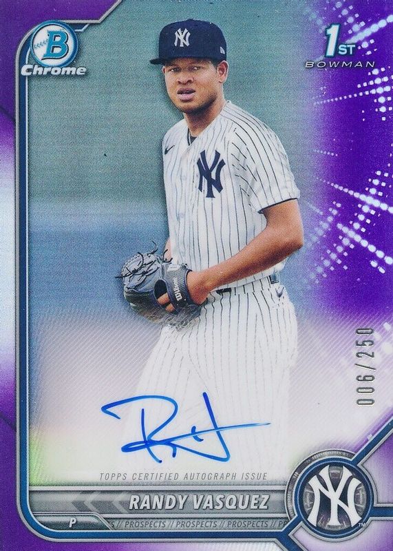Randy Vasquez 2022 Bowman Chrome Prospect Purple Refractor /250 #CPA-RV Auto