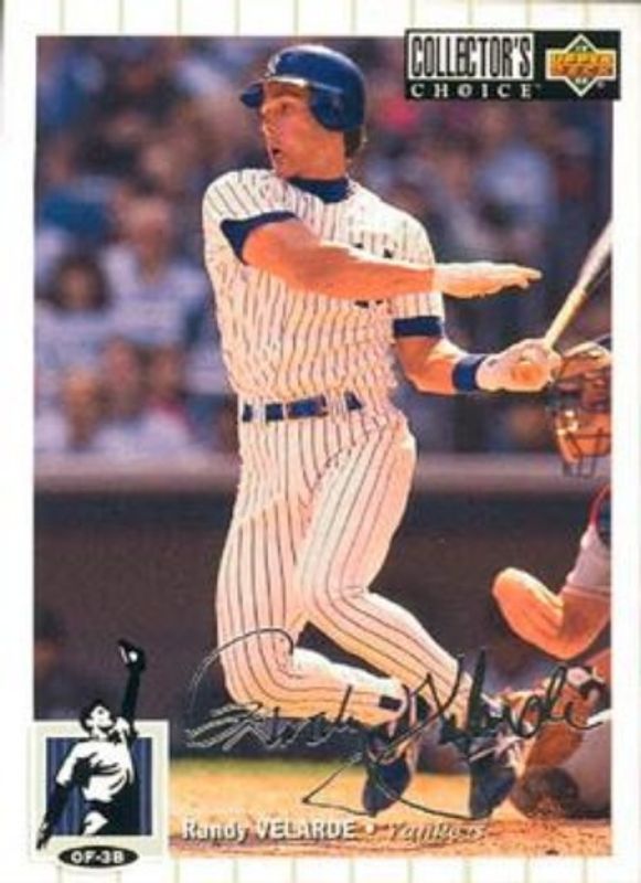 The Randy Velarde 1994 Upper Deck Collector's Choice #498 Silver Signatures card is 1 of 3 Randy Velarde's card variations in the 1994 Upper Deck Collector's Choice set being tracked by Sports Card Investor, including Base, and Gold Signatures.
