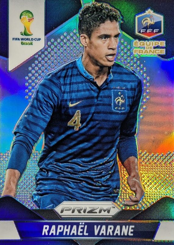 This card is 1 of 12 Raphael Varane's card variations in the 2014 Prizm World Cup set being tracked by Sports Card Investor, including Base, Blue & Red Wave, Red White Blue Power Plaid, Yellow & Red Pulsar, and Blue /199.