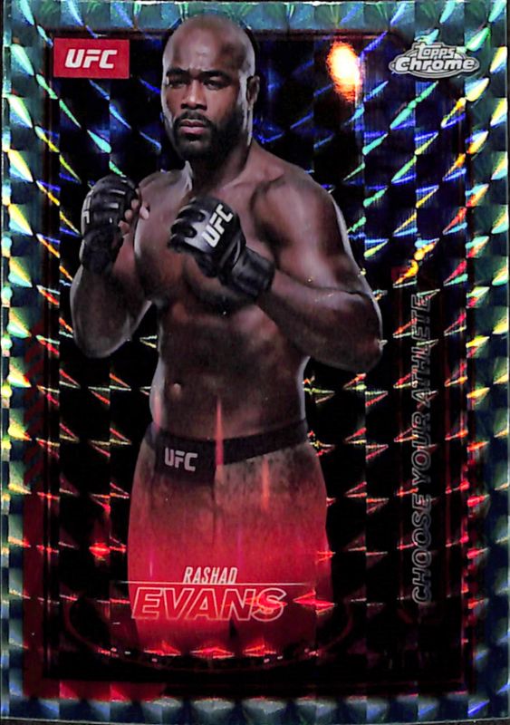 The Rashad Evans 2025 Topps Chrome UFC #MCL-2 Mission Control - Aqua Geometric Refractor /99 card is 1 of 23 Rashad Evans' card variations in the 2025 Topps Chrome UFC set being tracked by Sports Card Investor, including Allen & Ginter, Allen & Ginter - Refractor, Mission Control, Mission Control - Refractor, and Allen & Ginter - Blue Refractor /150.
