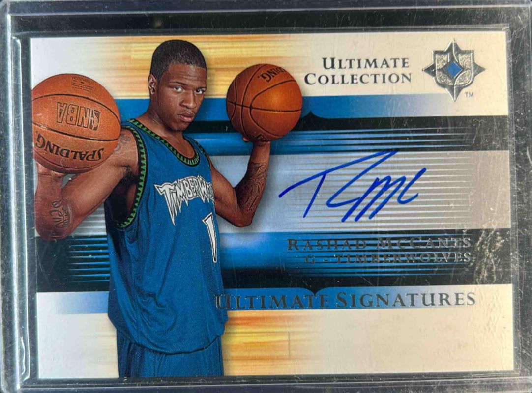 The Rashad McCants 2005 Upper Deck Ultimate Collection #US-RM Ultimate Signatures Rookie card is 1 of 11 Rashad McCants' card variations in the 2005 Upper Deck Ultimate Collection set being tracked by Sports Card Investor, including Base /750, Premium Swatches /100, Ultimate Game Jerseys /99, Ultimate Game Jersey Patches /75, and Premium Patches /50.