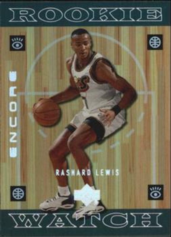 The Rashard Lewis 1998 Upper Deck Encore #143 Base Rookie card is 1 of 2 Rashard Lewis' card variations in the 1998 Upper Deck Encore set being tracked by Sports Card Investor, including F/X /125.