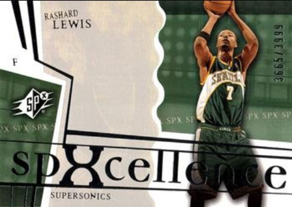 The Rashard Lewis 2003 SPx #112 Base /3999 card is 1 of 4 Rashard Lewis' card variations in the 2003 SPx set being tracked by Sports Card Investor, including #80 Base /3999, #112 Spectrum /25, and #80 Spectrum /25.