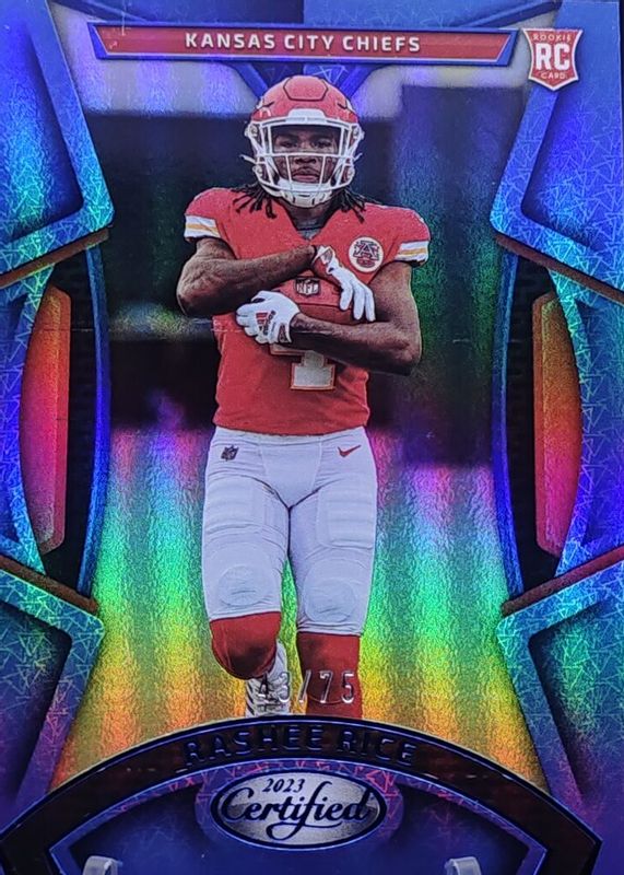 RASHEE RICE - RoOkiE /75 - 2023 Certified #108 - BLUE MIRROR /75 - KC Chiefs -